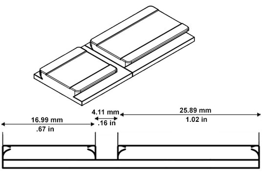 Jūs atpazīsiet Aimpoint Acro pēdas nospiedumu pēc pirmā acu uzmetiena, jo tas neizskatās kā neviens cits pēdas nospiedums. Tā vietā, lai izmantotu sēriju ar tapām un ligzdām, Aimpoint Acro pēdas nospiedums izmanto perpendikulāru atsitiena apturētāju.
